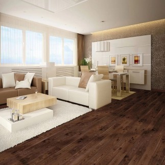 La couleur de café du parquet combinée avec les grains de bois sombres forment un ensemble extraordinaire, en soulignant à la fois l'expressivité et l'originalité du motif. Votre nouveau sol contrecollé en frêne Coffee vous permettra de créer de très belles ambiances dans votre habitation.